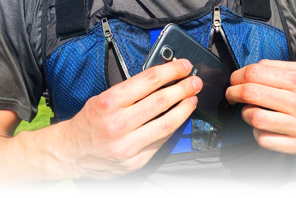 5) Allow access to critical contents during use, without removal, such as mobile phone, wallet, keys, water, snacks, first aid.