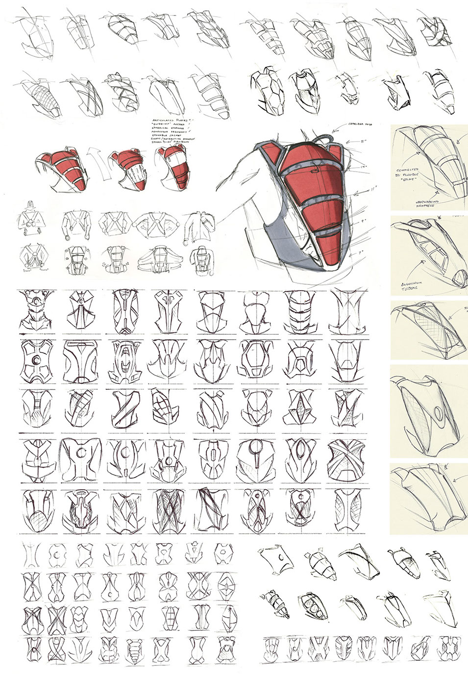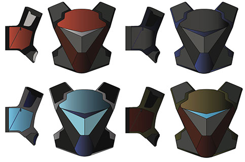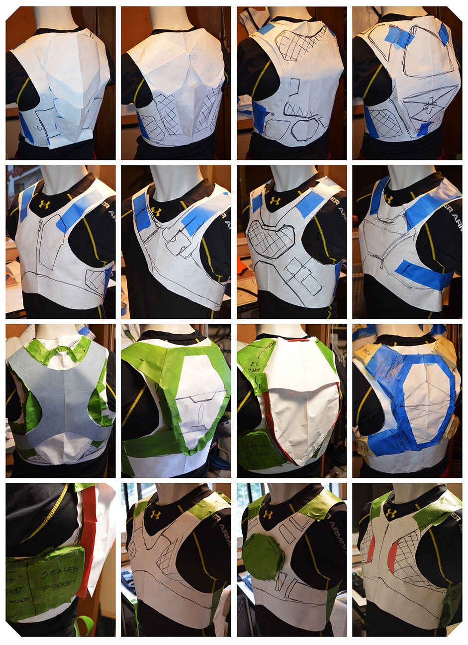 While the paper mock-ups on my mannequin were vitally important to getting the proportions of the design nailed down, they also allowed me to experiment with different ways I could place and orient the various features and elements.