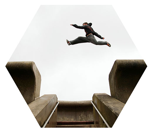 UPON MOVING TO San Francisco, in an effort to become familiar with the city, I joined a local parkour group, discovering a close-knit community and a new way of testing my potential. I connected deeply with the underlying philosophy of parkour: efficiency. The founding purpose is to move cleanly through one’s environment without wasteful actions or losing momentum. Obstacles are overcome in a way that preserves speed, minimizes risk of injury and encourages seamless transitions from one movement to the next.